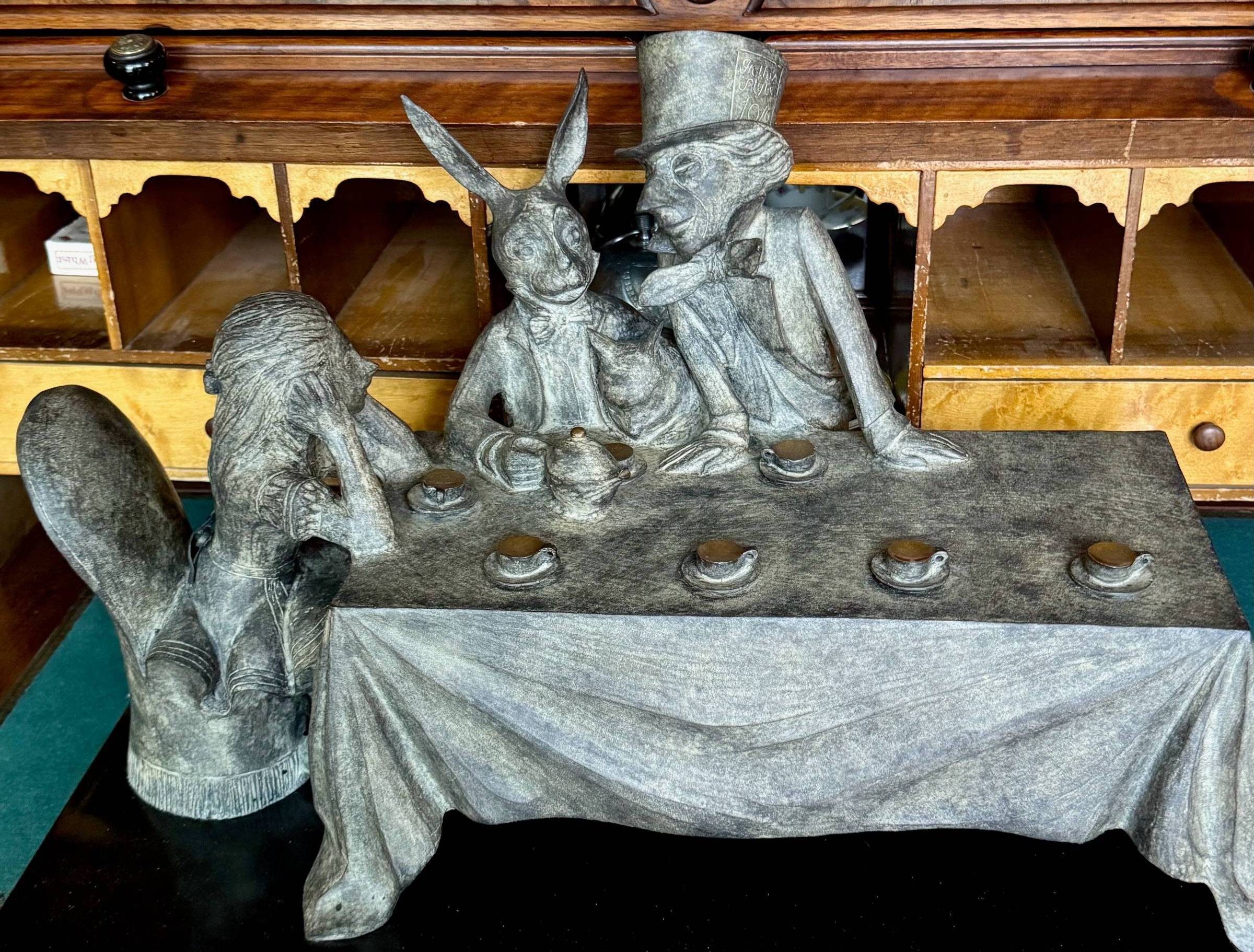 I remember the smiling faces, a young couple wanted nature in their apartment. They drove away with our five-foot philodendron poking out of their VW’s sunroof. A man, his arm amputated at the elbow, bought ten years of National Geographic Magazines. We carried them to his car. I sold half knit sweaters with extra yarn, embroidery kits barely begun, a collection of calico patches cut for a Friendship quilt, a project conceived twenty years earlier. Remnants from lives well-lived — autographed skateboard decks, bearings and wheels skate tools for adjusting t-shaped trucks. All types of balls— baseballs, basket balls, footballs, tennis balls, bocce balls flown home from Rome in their own leather case. Whatever remained was boxed and bagged, hauled to St. John’s for their annual rummage sale. That was ten years ago. The basement bulges with unopened boxes. Time to find that person whose eyes light up, who finds treasure in what we no longer need. Susan Schwartz Twiggs, published in Moss Piglet, August 2025 LOOK : Dillon Lake and the Rockies MEET : I travelled to Colorado last month to celebrate my brother Art’s 80th birthday. Cousin Carolyn introduces me to the Museum of Outdoor Arts to enjoy live music. It’s the cocktail hour. I notice a small building up on the hill, the size of a child’s playhouse, about 500 feet. I step inside. The installation is called a Cabinet of Curiosities and Impossibilities, its theme is the Brothers Grimm and each of the antique wooden cabinets holds a curated collection. One is in honor of Alice in Wonderland. Inside sits a sculpted bunny. On top a marble sculpture of Alice, the Mad Hatter and the White Rabbit. There are extra cups of tea. Shall we ? Around the corner a cabinet glows with Red Riding Hood’s velvet cape. Local artists are invited to display. This month’s artist, Jayne A. Harnett-Hargrove, plays with bricolage. She collects interesting 3D objects and artfully arranges them throughout her cabinets. Her exhibit, Monsters at Play is a cross between humorous and horrifying. I stare into layers of clay, leading down to a cave. I see the influence of costume design and opera. Bricolage according to Harnett-Hargrove assembles works from materials, that are found or repurposed. The term comes from the French word meaning « to tinker. » It involves layered compositions that blend unexpected textures, forms, and meanings. Childhood memories tumbled to the surface—tea parties and read-alouds on my mother’s lap. According to Jayne, she’s « word-wrangled, painted and taught on four continents. » If you’d like to see more of Harnett-Hargroves work visit her website at harnetthargrove.com. When you are next in Denver check out the Museum of Outdoor Art in Greenwood Valley. Open from May to October. moaonline.org LEARN : Cabinet of Curiosities -The original cabinets dated from the 16th century. Rulers and nobility often collected exotic items from ships trading with faraway places, like China or India. Practitioners of science also owned collections of skeletons or bones along with instruments such as astrolabs to measure the stars. Cabinets of Curiousities are credited with being the first private museums. READ: The Remarkable Journey of Coyote Sunrise by Dan Gemeinhart, the audio book narrated by Khristine Hvam. Winner of a Parents’ Choice Gold Award. Eleven-year-old Coyote and her dad, Rodeo, have been travelling in an old school bus ever since they buried Coyote’s mom and her sisters. They never stay in one place long, but then something big happens that Coyote has to return for and the bus fills up with people who need to be somewhere that Rodeo and Coyote just happen to be passing through. A quirky book with lots of feeling. I recommend the audiobook. |