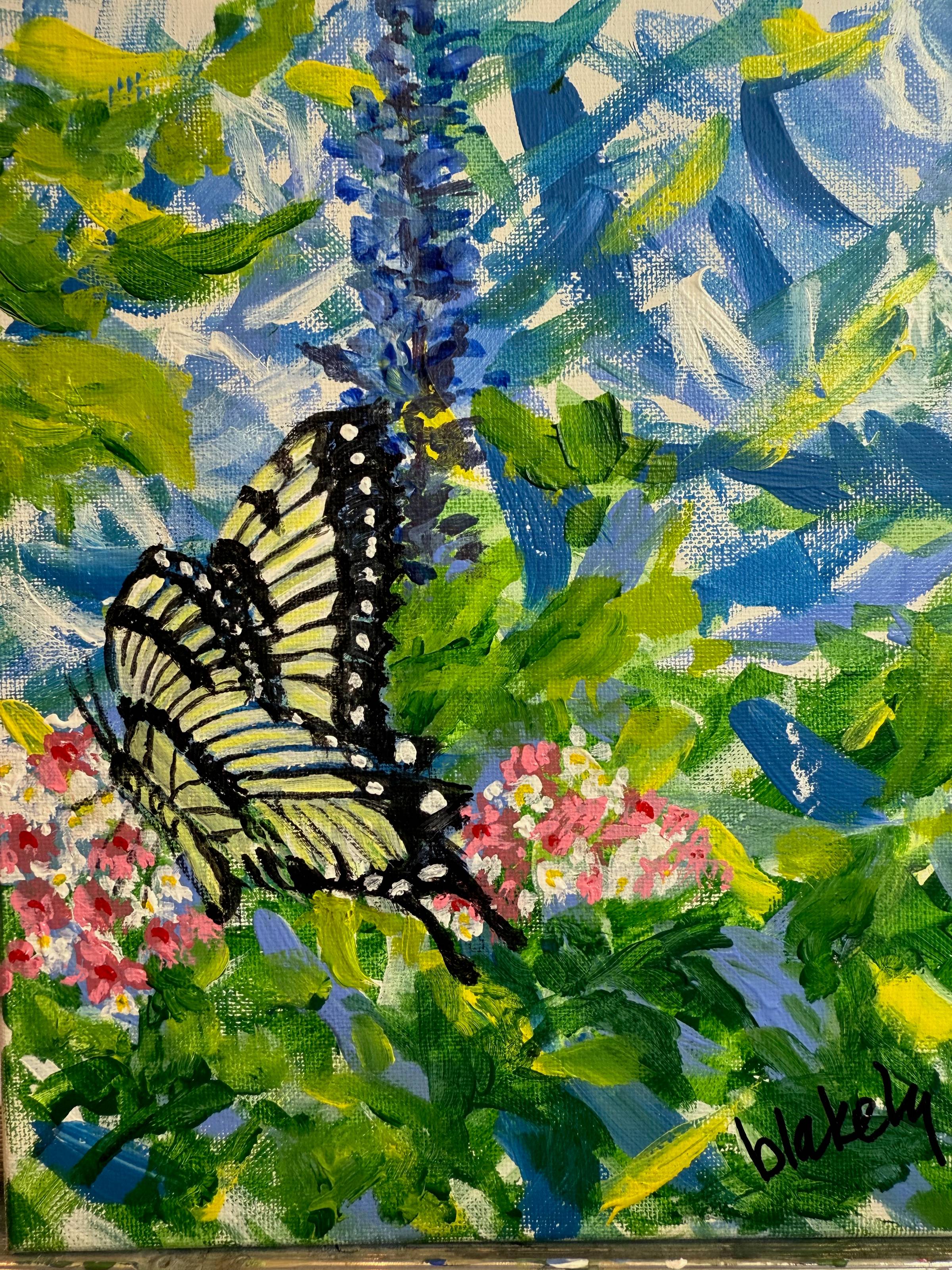 MEET : I’m standing in Ellen’s art studio that’s filled with light. Acrylic paints and pastels as well as partially painted canvases pique my interest. Ellen focused on watercolors early in her career. Paintings of flowers and landscapes are detailed, realistic. «Watercolor technique, according to Ellen, «requires more control and careful drawing.» She loves the tranparency of watercolor and the difficulty of this medium. Lately she’s been interested in acrylics and pastels. Her previously controlled work is replaced by layers of bright colors on abstract backgrounds. «[Ellen] loves the intensity of their color and their richness of texture. They are spontaneous and direct. » Her home is in Belleair, Florida and each summer she escapes the heat to return to her family’s cottage on the shore of Saginaw Bay in Michigan’s lower peninsula. I’ve known Ellen since I was born. Our mothers were best friends. I remember as a child she was constantly drawing. She often entered drawing contests and sometimes, she won. We roomed together at U of Michigan where she studied Art until she transferred to U of Wisconsin where she graduated in 1970. She completed a Commercial Art Degree from Tampa College in 1987. She’s taken many workshops with mentors Sandra Freckelton and Charles Reid.